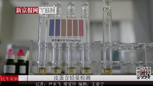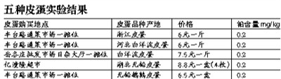 于老師用重金屬檢測的方法對皮蛋的鉛含量進行實驗測試,將它們與標準比色卡進行對比,結果顯示:這5種“無鉛皮蛋”都檢出了微量的鉛,但檢測結果都在0.2mg/kg,含量都遠遠低于國家標準限定的0.5mg/kg范圍,所以鉛含量超標。這些皮蛋的鉛含量是極其微量的,消費者不用過于擔心。