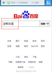 只要您在移動站點,如手機,平板電腦等瀏覽器里打開百度搜索,在搜索框中輸入“@智云達”,然后點擊百度一下,就能直達我們的輕應用(LAPP),即直接進入我們公司的手機應用。