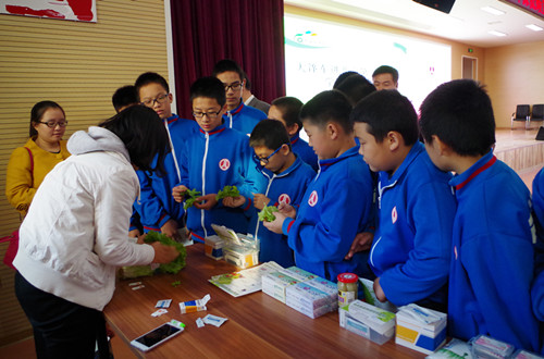食品安全檢測消費者體驗中心的老師帶領(lǐng)同學(xué)們親自動手體驗蔬菜中農(nóng)藥殘留檢測