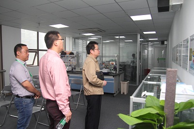 CEC(南京)食品安全檢測消費者體驗中心成立當天,我們有幸請到多位省領導參觀,并于10:28分進行剪彩,宣布CEC南京體驗中心正式成立。
