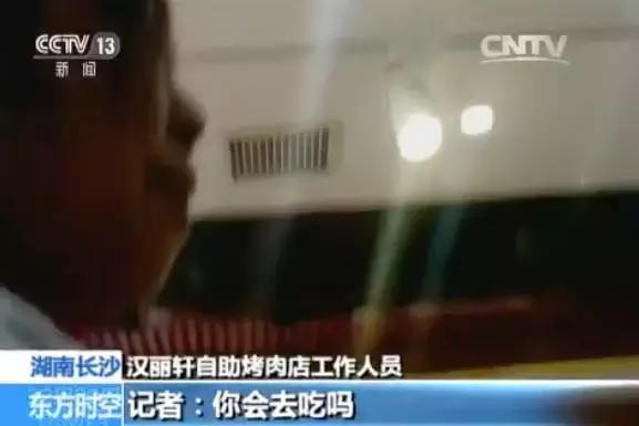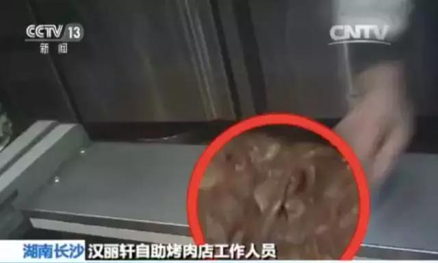 再來回顧一下,去年12月,湖南經(jīng)視記者臥底長沙一家漢麗軒門店,就發(fā)現(xiàn)這家49元隨便吃的自助烤肉店,用鴨肉冒充牛肉,經(jīng)過特殊醬料腌制后,顧客根本不會察覺。