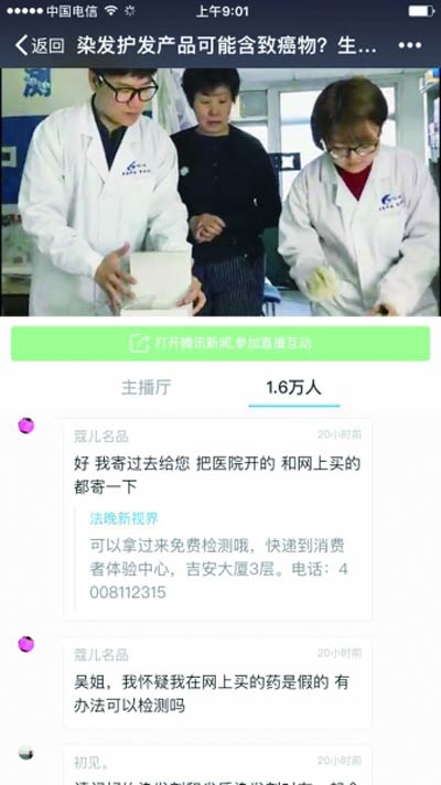 本文關(guān)鍵詞:北京智云達(dá) 法制晚報(bào) 騰訊直播 染發(fā)品苯二胺