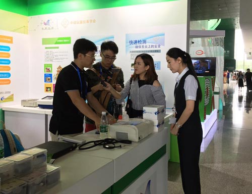 外國友人現場咨詢智云達食品安全快速檢測產品