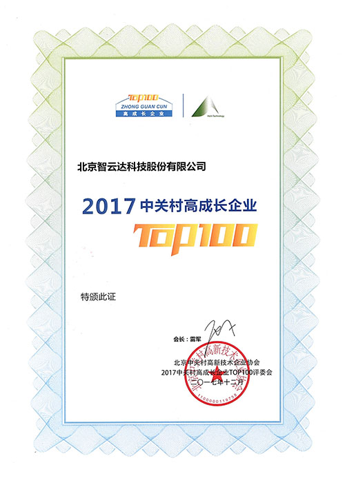 2017年12月在26日在北京友誼賓館舉辦了“2017中關(guān)村高成長企業(yè)TOP100”頒獎典禮。