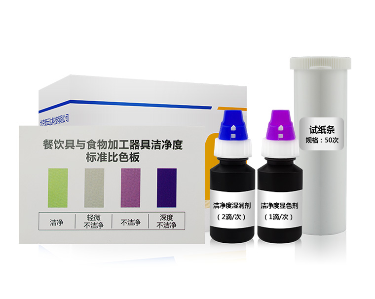 產(chǎn)品用途:餐飲具或食物加工器具上遺留或污染的蛋白質(zhì)或糖類物質(zhì),可與特定試劑反應(yīng)出現(xiàn)不同顏色,由此可通過與對(duì)照色卡比對(duì)判斷被檢物體表面潔凈的程度。