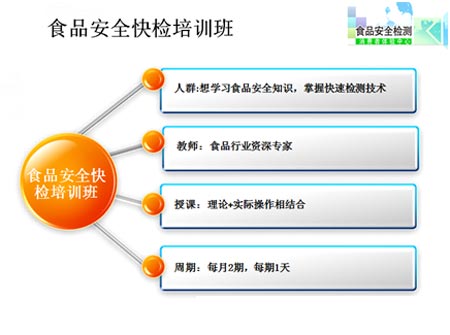 我們的培訓班有著強大的師資隊伍,專業的技術人員講解,訓時間為每月一期,每期1天,上午講解快速檢測知識,下午動手體驗快檢實驗操作。